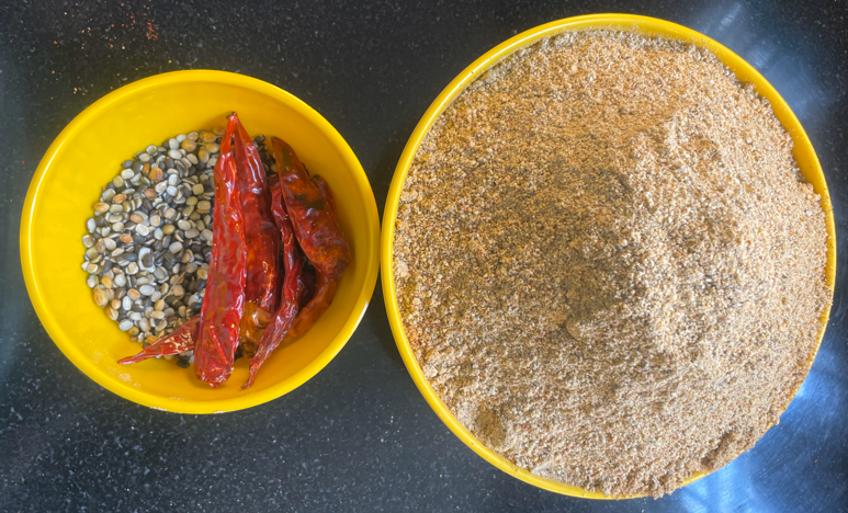 Nalla Karam, meaning "black chili" or "good/tasty spicy powder" in Telugu, is a traditional and highly popular dry chutney powder or spice blend from the state of Telangana and Andhra Pradesh in South India. It's renowned for its fiery flavor, earthy aroma, and slightly coarse texture, distinguishing it from other spice powders. The name "Nalla" referring to "black" comes from the use of black gram (udad dal with skin), which imparts a dark color to the powder upon roasting.